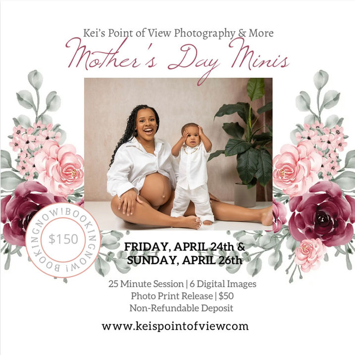 My name is Kiara, your favorite freelance photographer and creator behind the lens of, "Kei's Point of View Photography & More". Being a photographer was never a part of MY plan (want to make God laugh, right?) Although, I can say that being creative and capturing every special moment has always been a part of my life growing up and it gives me pure joy. I've always been the one ready to take someone's photo or get my photo taken. I've said for years that I wanted to invest into a "real" camera, but never found myself to actually doing it. It wasn't until 2020, during the pandemic where fiance helped me shift my focus on things that make me happy. To my surprise, he purchased my very first "REAL" camera, and then It seems as though my passion behind the lens would come into fruition. Being a mother, and coming from a family oriented background, I wanted to provide a photograpghy that is tailored to each client's specific wants and needs. Above all, I provide a fun and enjoyable experience.
